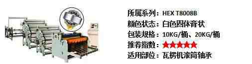 ??? 3、此潤滑脂被推薦為紙品制造業瓦楞紙機軸承專用的高性能潤滑脂,被許多家工廠用于潤滑單面瓦楞紙機設備上加熱輥的軸承。